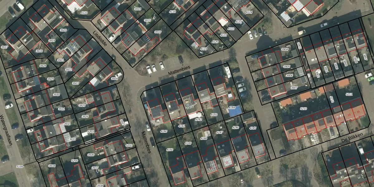 Gebruik de zoekbalk of klik op een perceel voor informatie over de adressen binnen dit perceel.