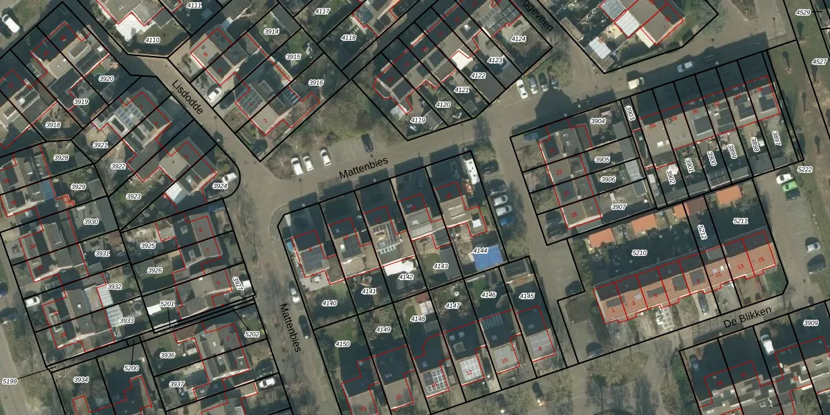 Mattenbies 14 is gelegen op kadastraal perceel ODB02B4143. Deze kadastrale aanduiding is uniek en wordt gebruikt door het Kadaster om eigendomsrechten en andere zakelijke rechten vast te leggen. Het perceel maakt onderdeel uit van de kadastrale gemeente Oudenbosch.