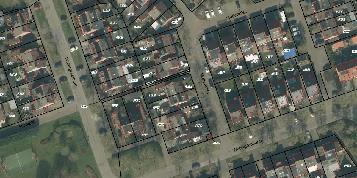 Het perceel waarop Mattenbies 3 staat heeft een oppervlakte van 259 m². Dit is een middelgroot perceel. De perceeloppervlakte wordt geregistreerd door het Kadaster. Gedetailleerde informatie over de maten van dit perceel kunt u vinden in het rapport Kadastrale kaart met maatvoering van Mattenbies 3.