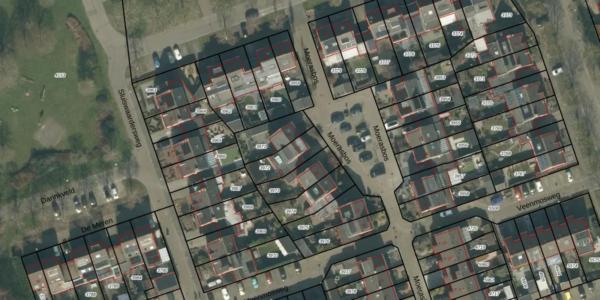 Gebruik de zoekbalk of klik op een perceel voor informatie over de adressen binnen dit perceel.