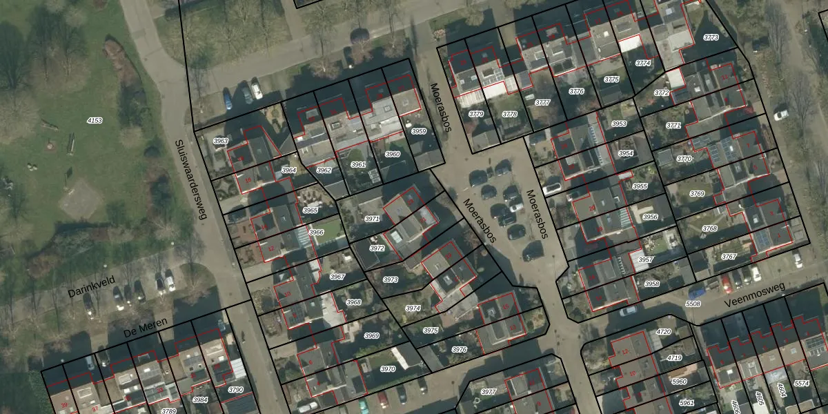 Moerasbos 23 is gelegen op kadastraal perceel ODB02B3971. Deze kadastrale aanduiding is uniek en wordt gebruikt door het Kadaster om eigendomsrechten en andere zakelijke rechten vast te leggen. Het perceel maakt onderdeel uit van de kadastrale gemeente Oudenbosch.