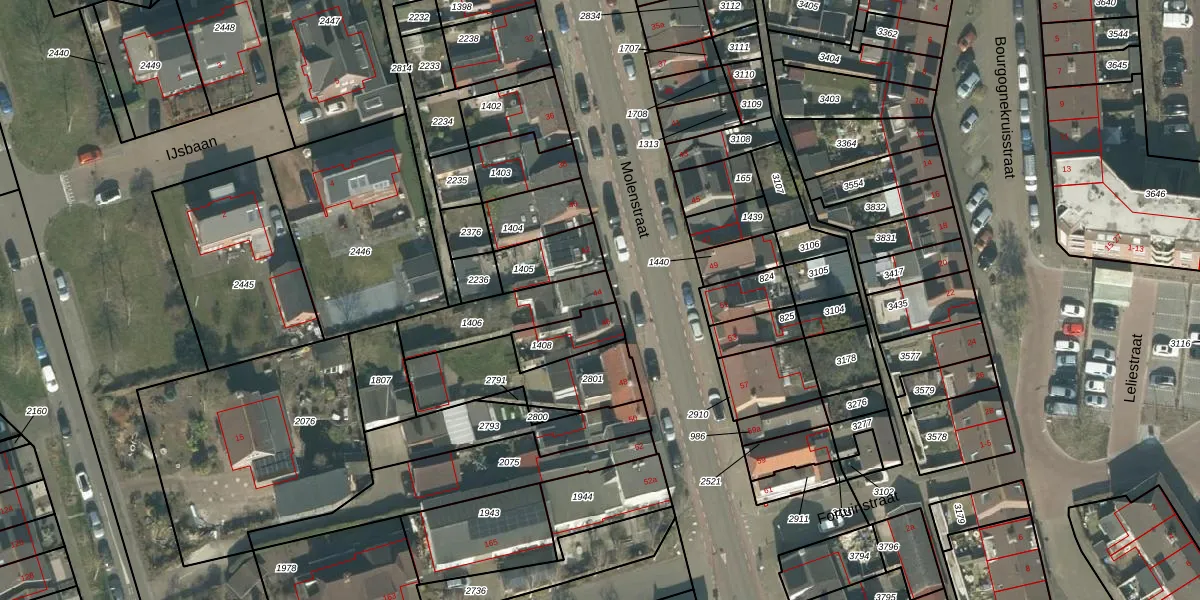 Het perceel waarop Molenstraat 44 staat heeft een oppervlakte van 222 m². Dit is een middelgroot perceel. De perceeloppervlakte wordt geregistreerd door het Kadaster. Gedetailleerde informatie over de maten van dit perceel kunt u vinden in het rapport Kadastrale kaart met maatvoering van Molenstraat 44.