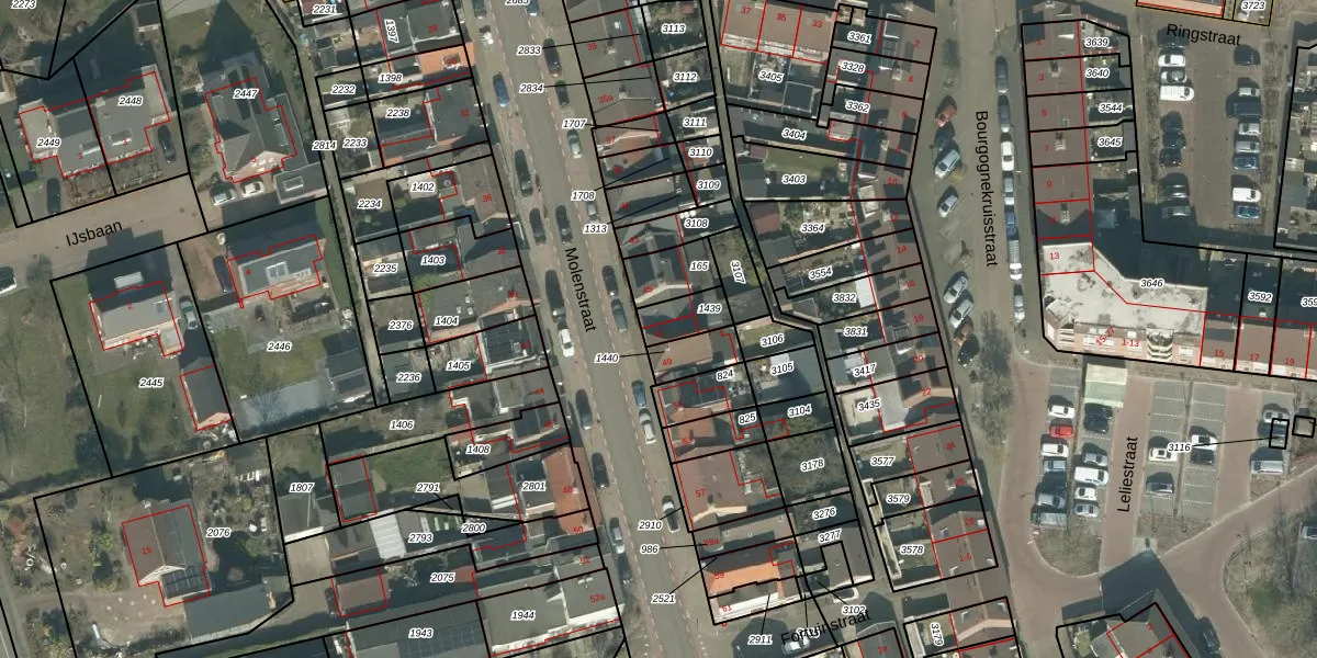 Gebruik de zoekbalk of klik op een perceel voor informatie over de adressen binnen dit perceel.
