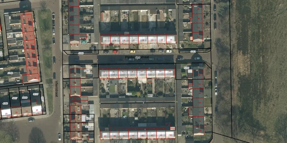 Het perceel waarop Pijnboomstraat 10 staat heeft een oppervlakte van 4953 m². Dit is een zeer groot perceel. De perceeloppervlakte wordt geregistreerd door het Kadaster. Gedetailleerde informatie over de maten van dit perceel kunt u vinden in het rapport Kadastrale kaart met maatvoering van Pijnboomstraat 10.