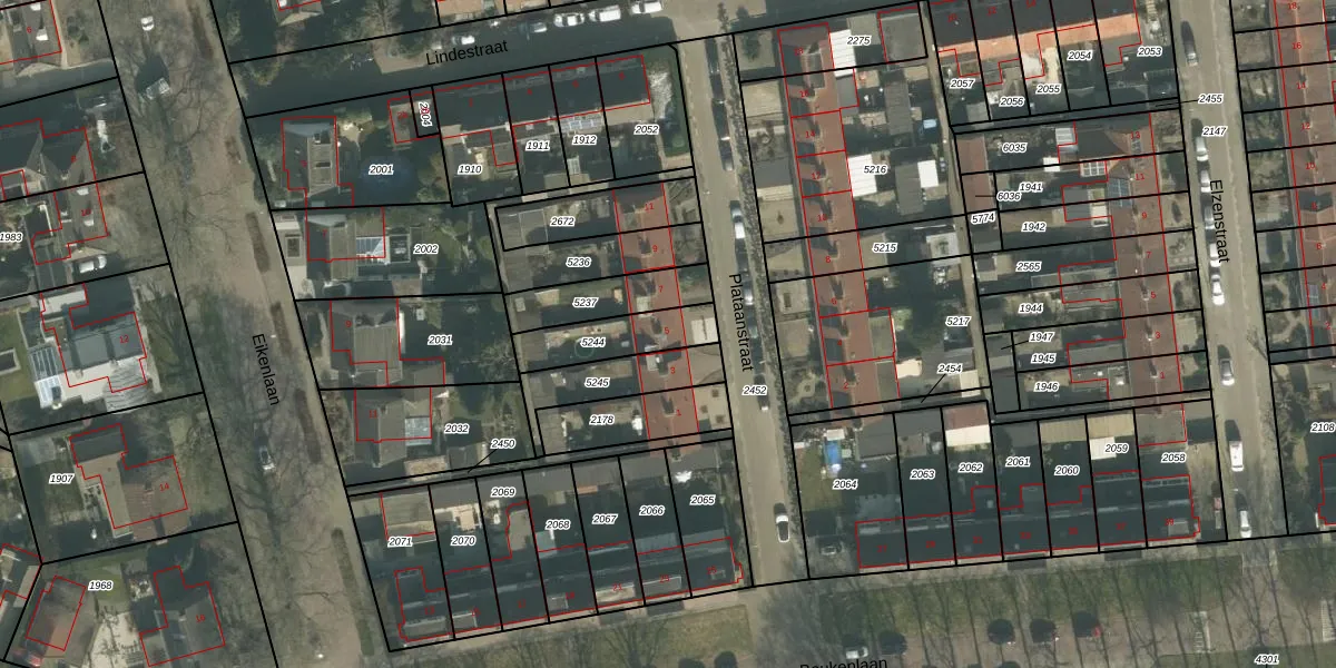 Gebruik de zoekbalk of klik op een perceel voor informatie over de adressen binnen dit perceel.