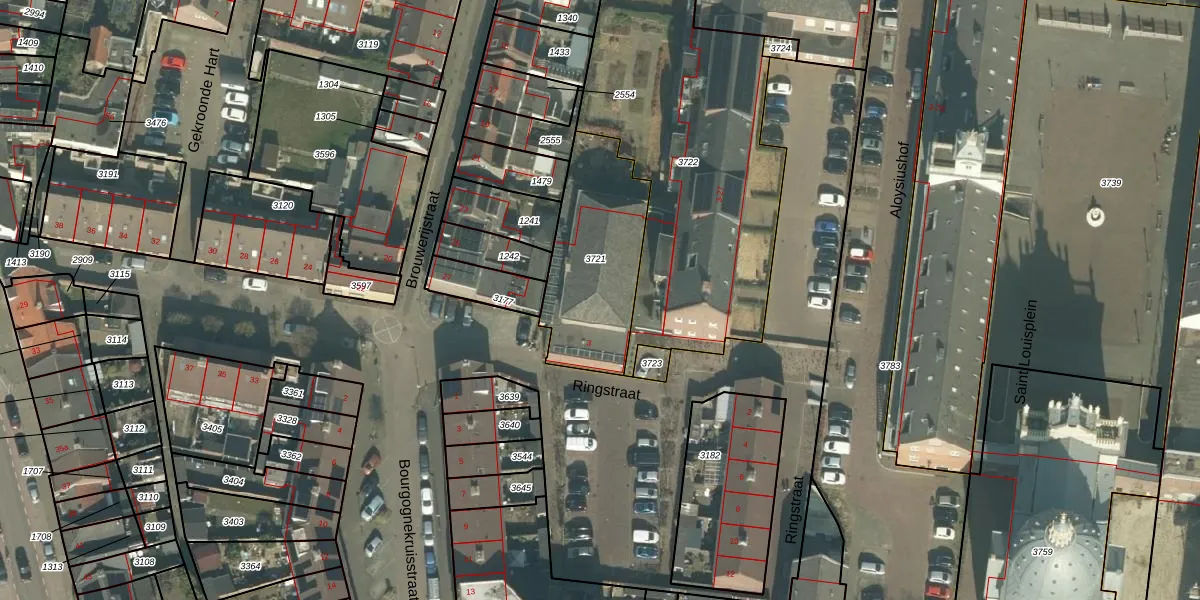 Gebruik de zoekbalk of klik op een perceel voor informatie over de adressen binnen dit perceel.