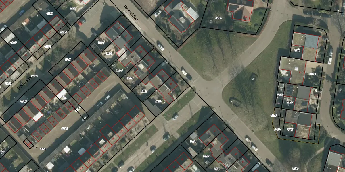 Romelaan 49 is gelegen op kadastraal perceel ODB02B2870. Deze kadastrale aanduiding is uniek en wordt gebruikt door het Kadaster om eigendomsrechten en andere zakelijke rechten vast te leggen. Het perceel maakt onderdeel uit van de kadastrale gemeente Oudenbosch.
