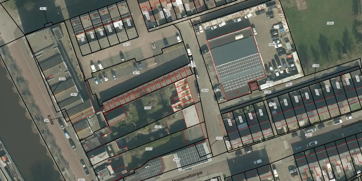 Rooseveltstraat 42-l is gelegen op kadastraal perceel ODB02D2000. Deze kadastrale aanduiding is uniek en wordt gebruikt door het Kadaster om eigendomsrechten en andere zakelijke rechten vast te leggen. Het perceel maakt onderdeel uit van de kadastrale gemeente Oudenbosch.