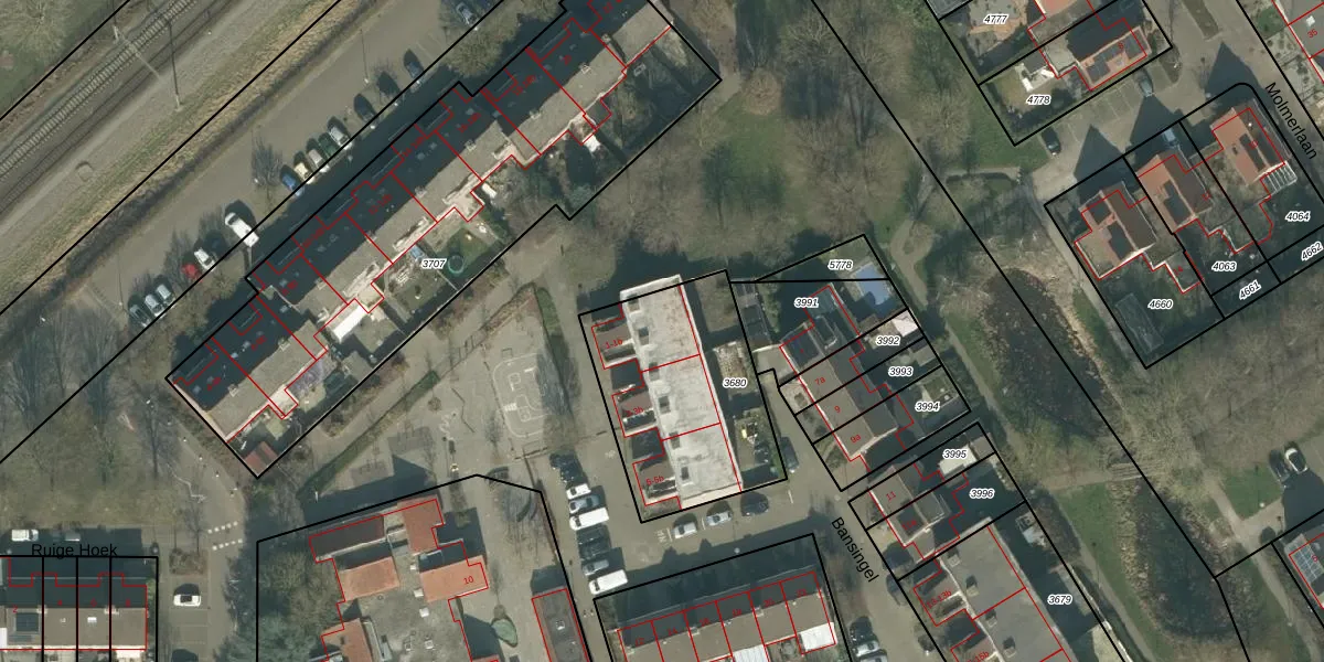 Ruige Hoek 1-a is gelegen op kadastraal perceel ODB02B3680. Deze kadastrale aanduiding is uniek en wordt gebruikt door het Kadaster om eigendomsrechten en andere zakelijke rechten vast te leggen. Het perceel maakt onderdeel uit van de kadastrale gemeente Oudenbosch.