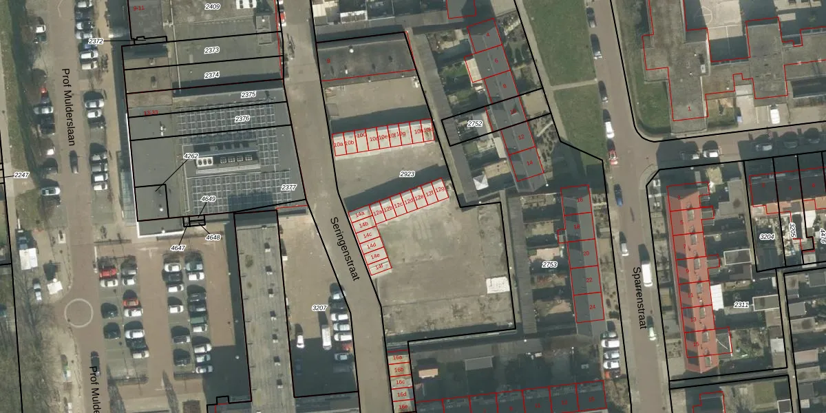 Seringenstraat 12-d is gelegen op kadastraal perceel ODB02B2923. Deze kadastrale aanduiding is uniek en wordt gebruikt door het Kadaster om eigendomsrechten en andere zakelijke rechten vast te leggen. Het perceel maakt onderdeel uit van de kadastrale gemeente Oudenbosch.