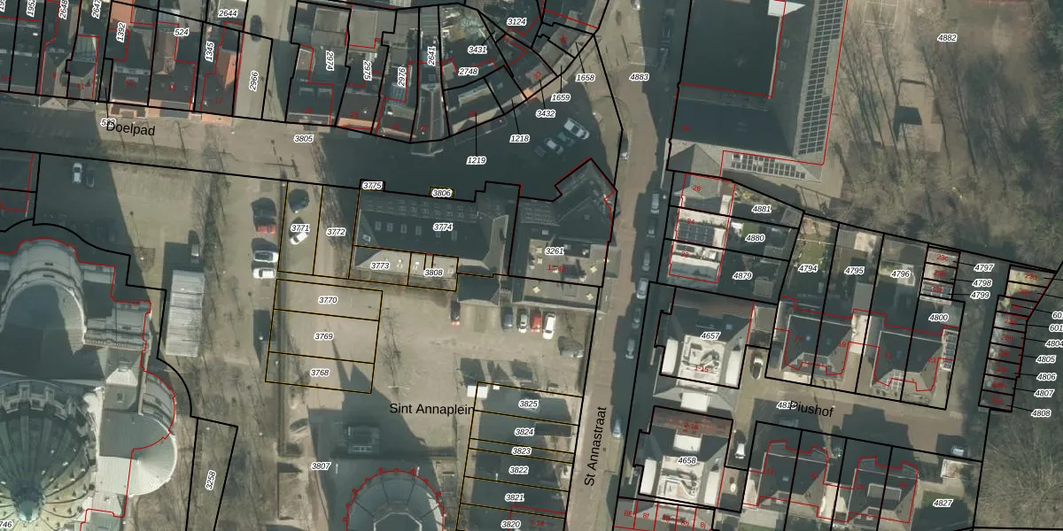 Het perceel waarop Sint Annaplein 13 staat heeft een oppervlakte van 325 m². Dit is een groot perceel. De perceeloppervlakte wordt geregistreerd door het Kadaster. Gedetailleerde informatie over de maten van dit perceel kunt u vinden in het rapport Kadastrale kaart met maatvoering van Sint Annaplein 13.