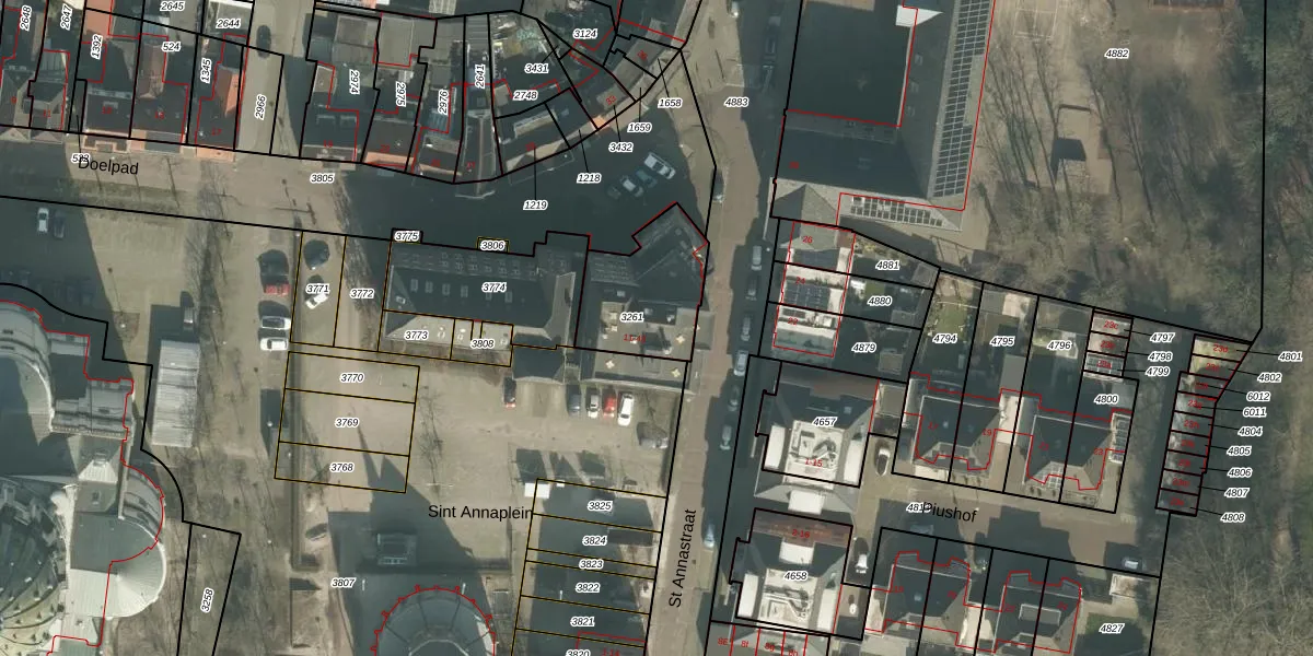 Het perceel waarop Sint Annaplein 31 staat heeft een oppervlakte van 325 m². Dit is een groot perceel. De perceeloppervlakte wordt geregistreerd door het Kadaster. Gedetailleerde informatie over de maten van dit perceel kunt u vinden in het rapport Kadastrale kaart met maatvoering van Sint Annaplein 31.