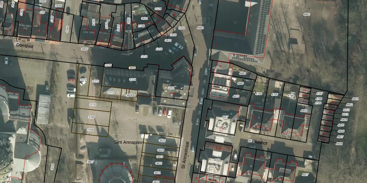 Sint Annaplein 33 is gelegen op kadastraal perceel ODB02D3261. Deze kadastrale aanduiding is uniek en wordt gebruikt door het Kadaster om eigendomsrechten en andere zakelijke rechten vast te leggen. Het perceel maakt onderdeel uit van de kadastrale gemeente Oudenbosch.