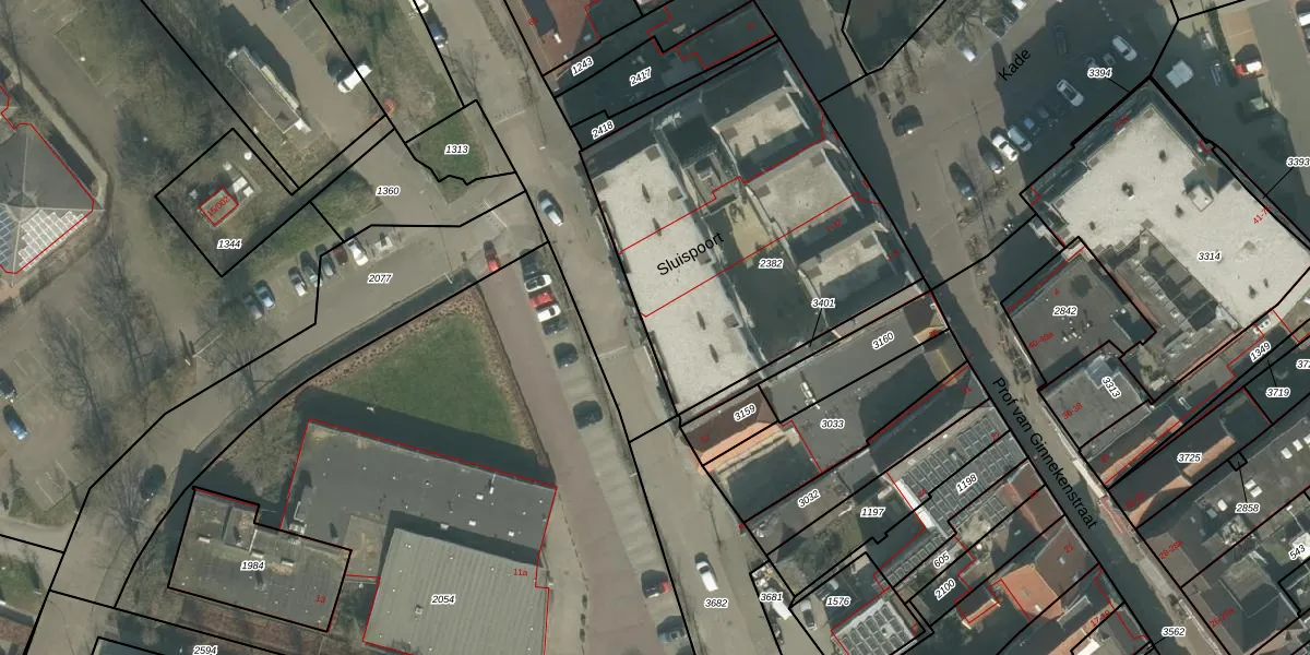 Het perceel waarop Sluispoort 2 staat heeft een oppervlakte van 1665 m². Dit is een zeer groot perceel. De perceeloppervlakte wordt geregistreerd door het Kadaster. Gedetailleerde informatie over de maten van dit perceel kunt u vinden in het rapport Kadastrale kaart met maatvoering van Sluispoort 2.