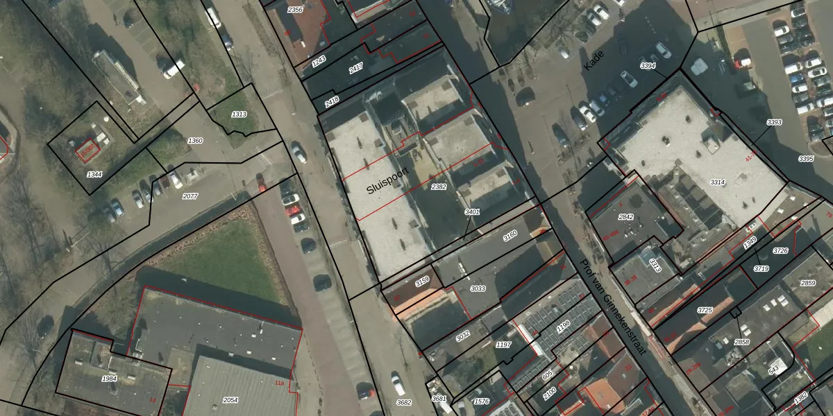 Het perceel waarop Sluispoort 28 staat heeft een oppervlakte van 1665 m². Dit is een zeer groot perceel. De perceeloppervlakte wordt geregistreerd door het Kadaster. Gedetailleerde informatie over de maten van dit perceel kunt u vinden in het rapport Kadastrale kaart met maatvoering van Sluispoort 28.