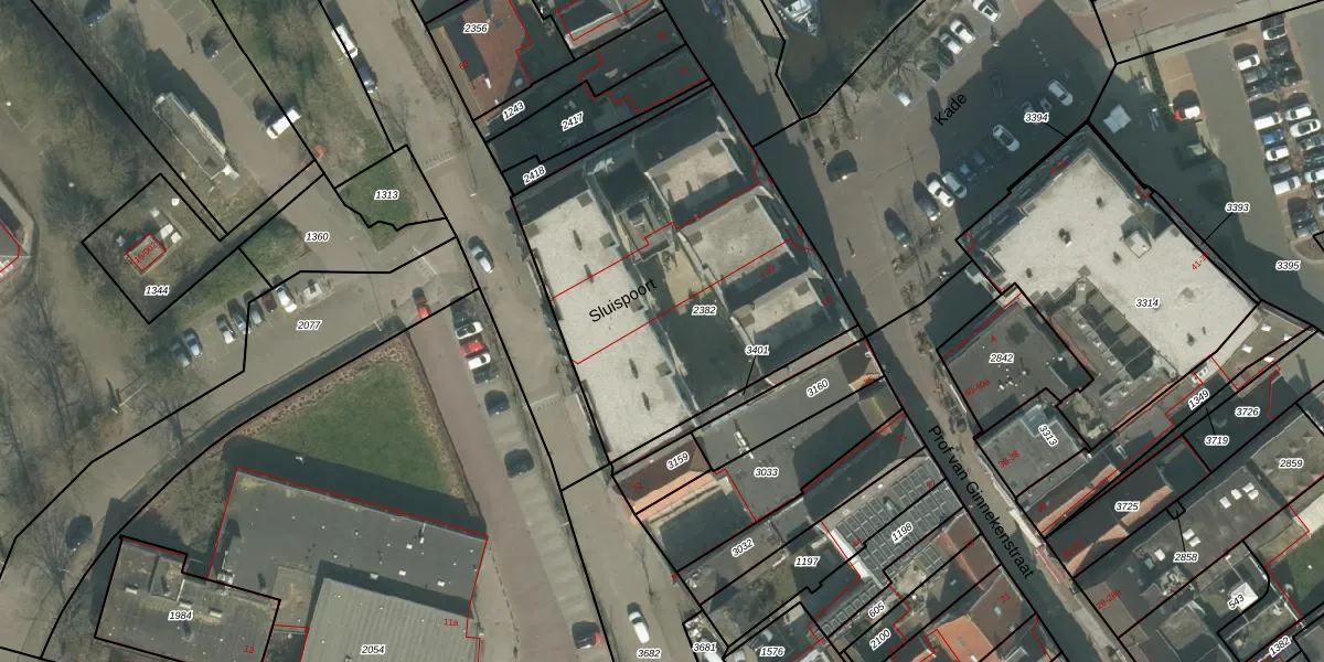 Het perceel waarop Sluispoort 8 staat heeft een oppervlakte van 1665 m². Dit is een zeer groot perceel. De perceeloppervlakte wordt geregistreerd door het Kadaster. Gedetailleerde informatie over de maten van dit perceel kunt u vinden in het rapport Kadastrale kaart met maatvoering van Sluispoort 8.