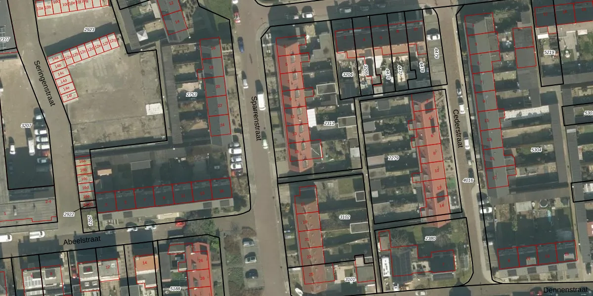 Sparrenstraat 15 is gelegen op kadastraal perceel ODB02B2311. Deze kadastrale aanduiding is uniek en wordt gebruikt door het Kadaster om eigendomsrechten en andere zakelijke rechten vast te leggen. Het perceel maakt onderdeel uit van de kadastrale gemeente Oudenbosch.