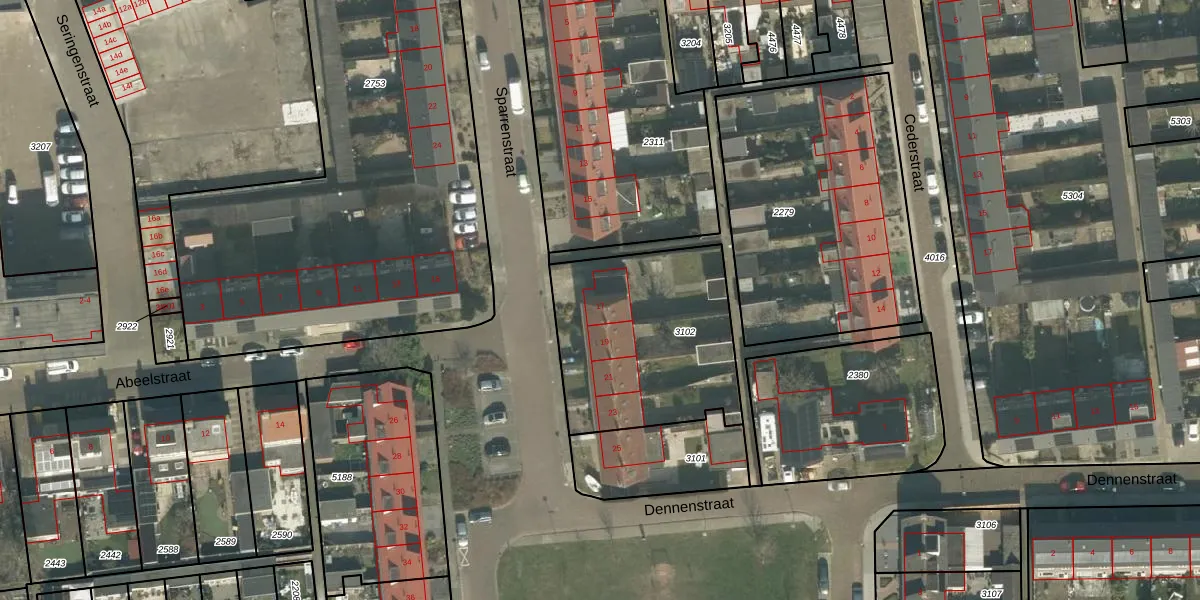Sparrenstraat 17 is gelegen op kadastraal perceel ODB02B3102. Deze kadastrale aanduiding is uniek en wordt gebruikt door het Kadaster om eigendomsrechten en andere zakelijke rechten vast te leggen. Het perceel maakt onderdeel uit van de kadastrale gemeente Oudenbosch.