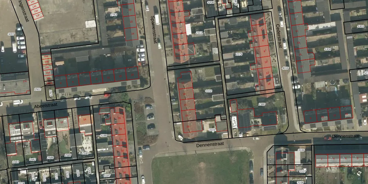 Sparrenstraat 19 is gelegen op kadastraal perceel ODB02B3102. Deze kadastrale aanduiding is uniek en wordt gebruikt door het Kadaster om eigendomsrechten en andere zakelijke rechten vast te leggen. Het perceel maakt onderdeel uit van de kadastrale gemeente Oudenbosch.
