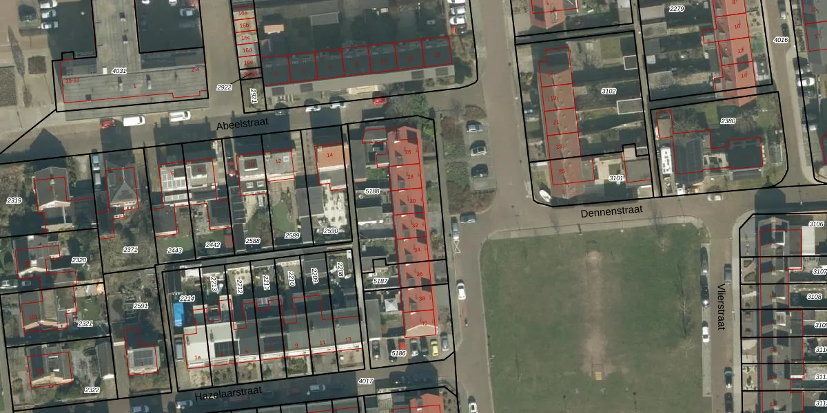 Sparrenstraat 30 is gelegen op kadastraal perceel ODB02B5188. Deze kadastrale aanduiding is uniek en wordt gebruikt door het Kadaster om eigendomsrechten en andere zakelijke rechten vast te leggen. Het perceel maakt onderdeel uit van de kadastrale gemeente Oudenbosch.