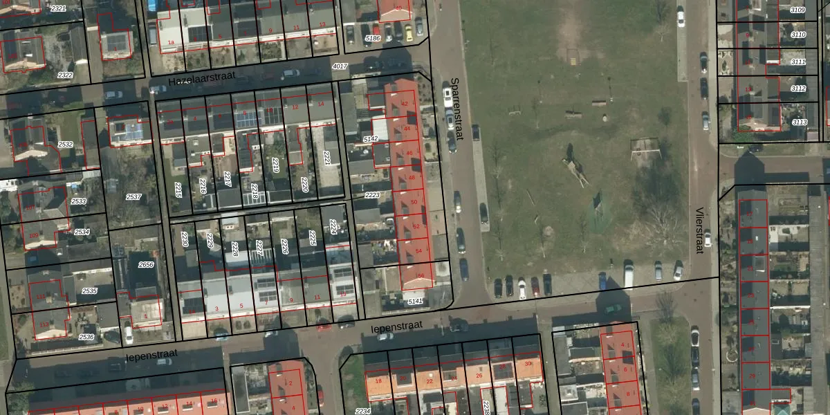 Sparrenstraat 50 is gelegen op kadastraal perceel ODB02B5142. Deze kadastrale aanduiding is uniek en wordt gebruikt door het Kadaster om eigendomsrechten en andere zakelijke rechten vast te leggen. Het perceel maakt onderdeel uit van de kadastrale gemeente Oudenbosch.