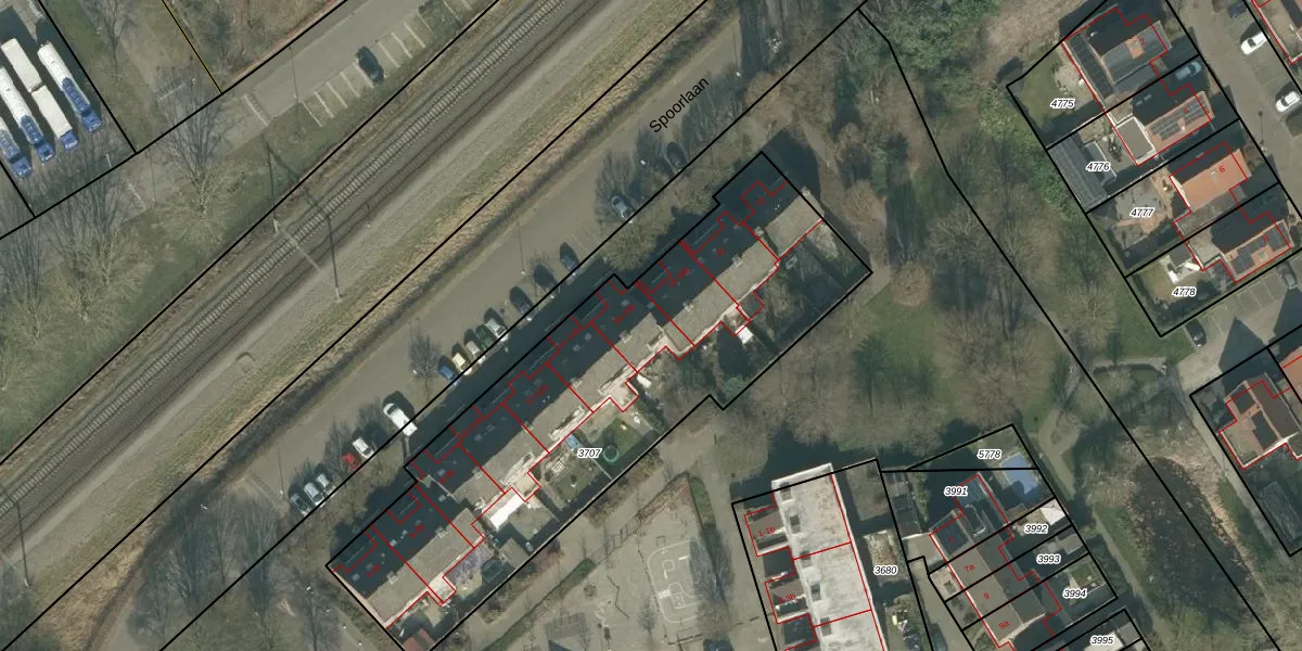 Spoorlaan 16-b is gelegen op kadastraal perceel ODB02B3707. Deze kadastrale aanduiding is uniek en wordt gebruikt door het Kadaster om eigendomsrechten en andere zakelijke rechten vast te leggen. Het perceel maakt onderdeel uit van de kadastrale gemeente Oudenbosch.