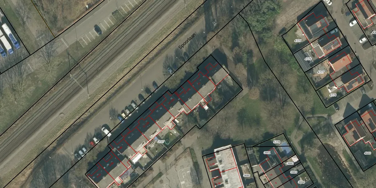 Spoorlaan 18 is gelegen op kadastraal perceel ODB02B3707. Deze kadastrale aanduiding is uniek en wordt gebruikt door het Kadaster om eigendomsrechten en andere zakelijke rechten vast te leggen. Het perceel maakt onderdeel uit van de kadastrale gemeente Oudenbosch.