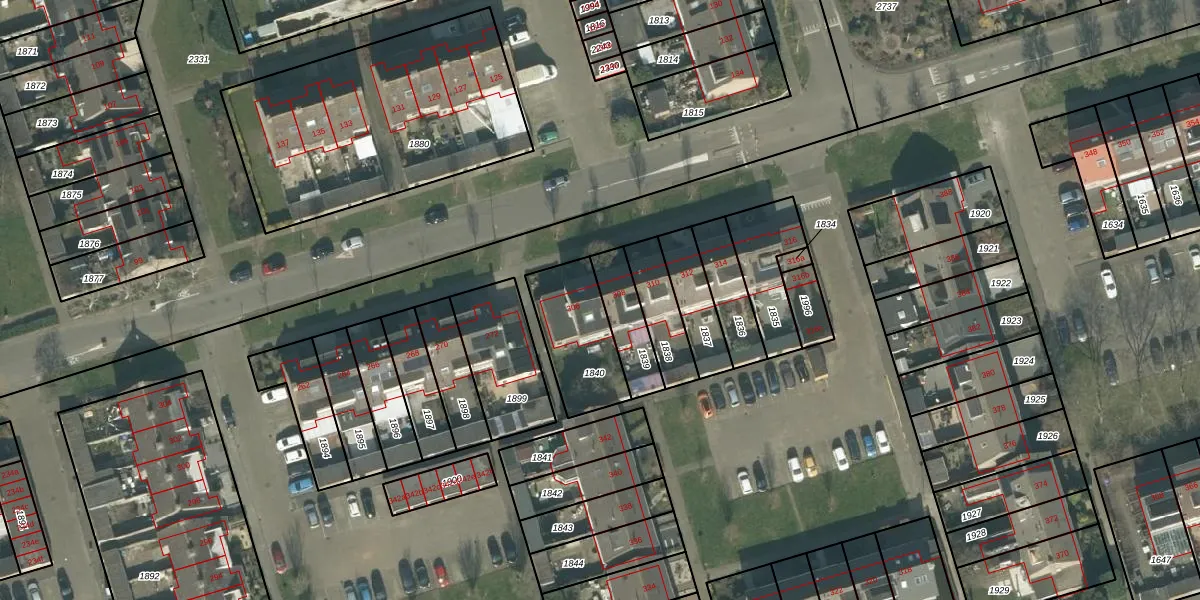 Gebruik de zoekbalk of klik op een perceel voor informatie over de adressen binnen dit perceel.