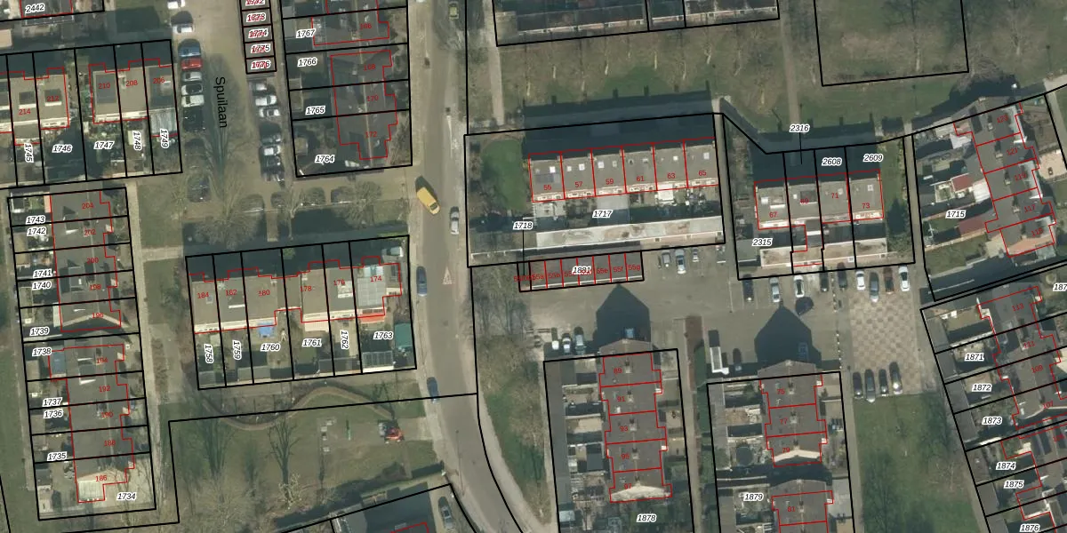 Het perceel waarop Spuilaan 55-a staat heeft een oppervlakte van 116 m². Dit is een middelgroot perceel. De perceeloppervlakte wordt geregistreerd door het Kadaster. Gedetailleerde informatie over de maten van dit perceel kunt u vinden in het rapport Kadastrale kaart met maatvoering van Spuilaan 55-a.