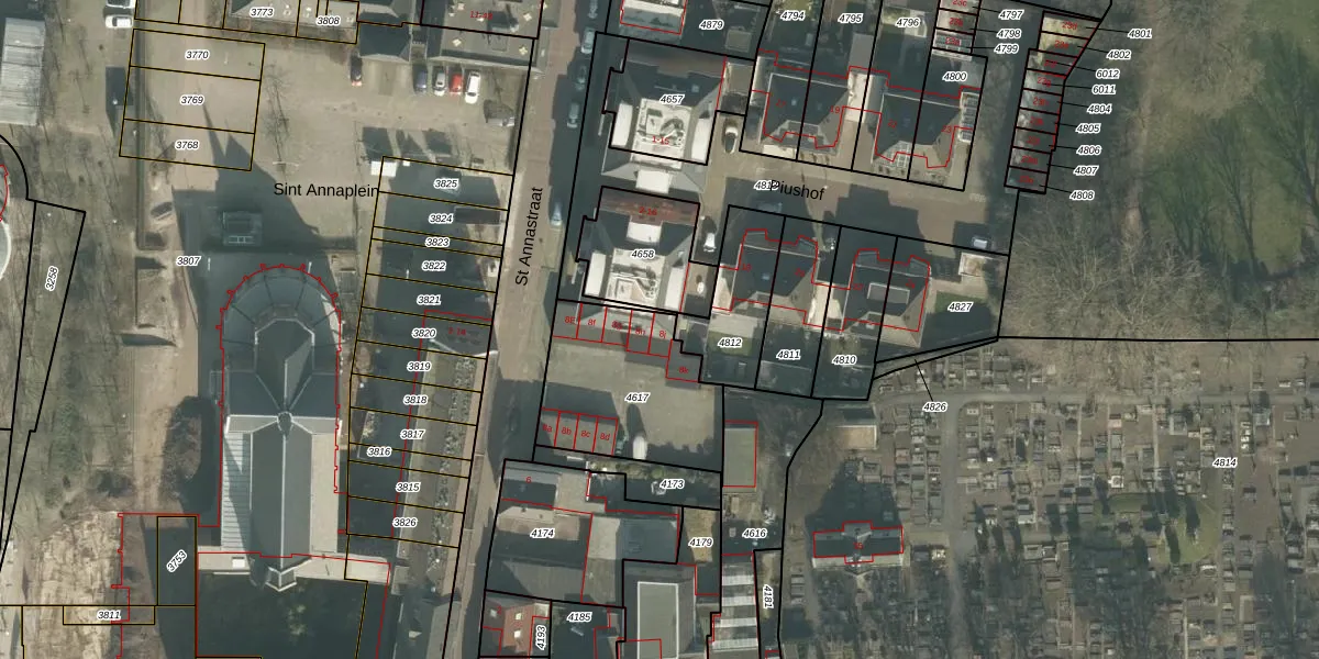 St Annastraat 8-j is gelegen op kadastraal perceel ODB02B4617. Deze kadastrale aanduiding is uniek en wordt gebruikt door het Kadaster om eigendomsrechten en andere zakelijke rechten vast te leggen. Het perceel maakt onderdeel uit van de kadastrale gemeente Oudenbosch.