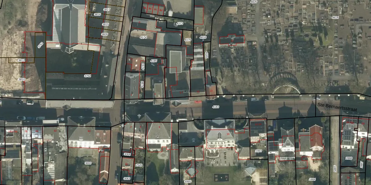 Het perceel waarop Ste Bernaertsstraat 7 staat heeft een oppervlakte van 483 m². Dit is een groot perceel. De perceeloppervlakte wordt geregistreerd door het Kadaster. Gedetailleerde informatie over de maten van dit perceel kunt u vinden in het rapport Kadastrale kaart met maatvoering van Ste Bernaertsstraat 7.