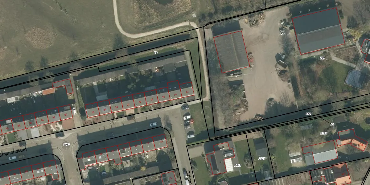 Strijmondlaan 12 is gelegen op kadastraal perceel ODB02A1647. Deze kadastrale aanduiding is uniek en wordt gebruikt door het Kadaster om eigendomsrechten en andere zakelijke rechten vast te leggen. Het perceel maakt onderdeel uit van de kadastrale gemeente Oudenbosch.