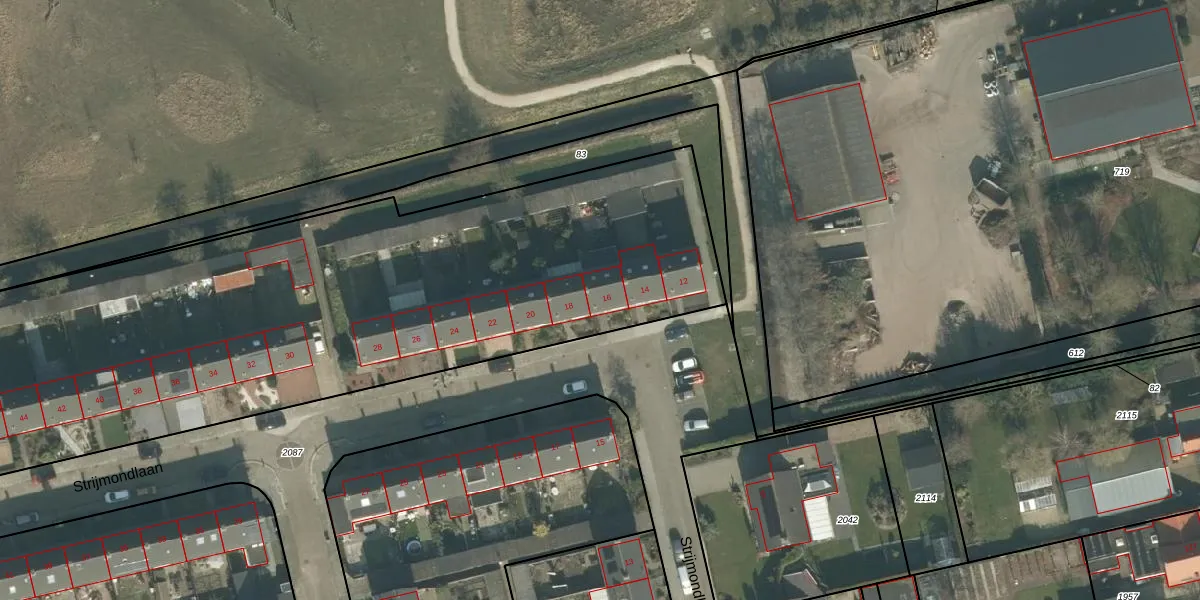 Strijmondlaan 16 is gelegen op kadastraal perceel ODB02A1647. Deze kadastrale aanduiding is uniek en wordt gebruikt door het Kadaster om eigendomsrechten en andere zakelijke rechten vast te leggen. Het perceel maakt onderdeel uit van de kadastrale gemeente Oudenbosch.