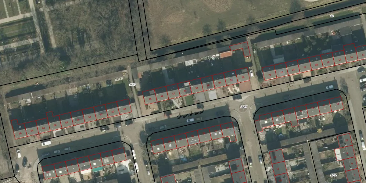 Het perceel waarop Strijmondlaan 40 staat heeft een oppervlakte van 6362 m². Dit is een zeer groot perceel. De perceeloppervlakte wordt geregistreerd door het Kadaster. Gedetailleerde informatie over de maten van dit perceel kunt u vinden in het rapport Kadastrale kaart met maatvoering van Strijmondlaan 40.