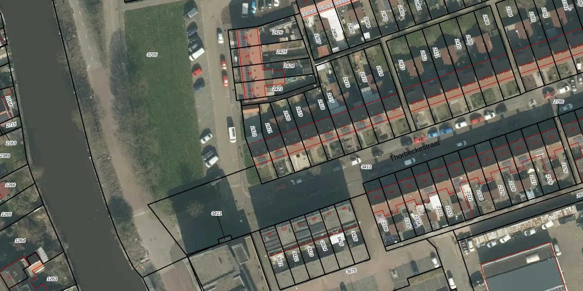 Thorbeckestraat 42 is gelegen op kadastraal perceel ODB02D2420. Deze kadastrale aanduiding is uniek en wordt gebruikt door het Kadaster om eigendomsrechten en andere zakelijke rechten vast te leggen. Het perceel maakt onderdeel uit van de kadastrale gemeente Oudenbosch.
