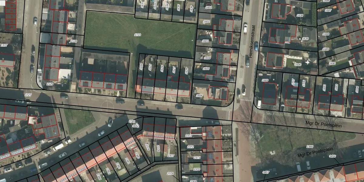 Het perceel waarop het adres ligt is ODB02-A-1628. De afkorting 'ODB02' staat voor kadastrale gemeente Oudenbosch. Het perceel is 183 m² groot. Dat is kleiner dan de gemiddelde perceeloppervlakte in Oudenbosch, dat op 1824,91 m² ligt. Het grootste perceel in de kadastrale gemeente is 17,9 ha. Het kleinste perceel heeft een oppervlakte van 0 m². Er zijn geen andere adressen aanwezig op het perceel. De laatste wijziging in het de Basisregistratie Kadaster (BRK) was op 21-09-2009.