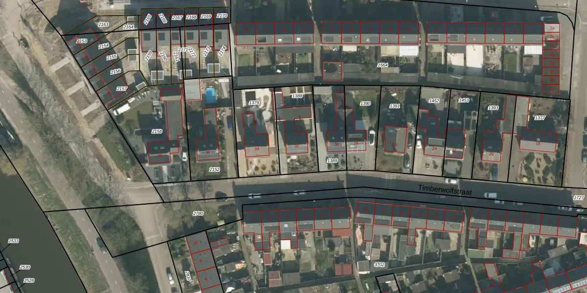 Timberwolfstraat 32 is gelegen op kadastraal perceel ODB02A1388. Deze kadastrale aanduiding is uniek en wordt gebruikt door het Kadaster om eigendomsrechten en andere zakelijke rechten vast te leggen. Het perceel maakt onderdeel uit van de kadastrale gemeente Oudenbosch.
