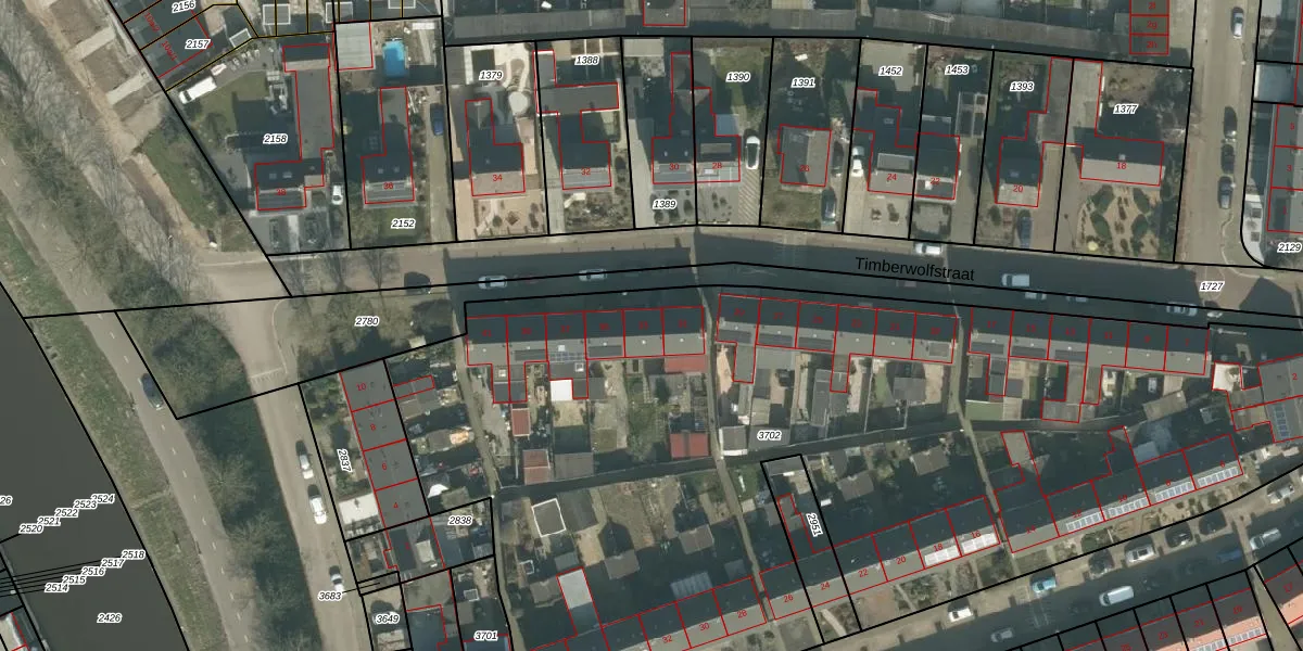 Timberwolfstraat 33 is gelegen op kadastraal perceel ODB02D3702. Deze kadastrale aanduiding is uniek en wordt gebruikt door het Kadaster om eigendomsrechten en andere zakelijke rechten vast te leggen. Het perceel maakt onderdeel uit van de kadastrale gemeente Oudenbosch.