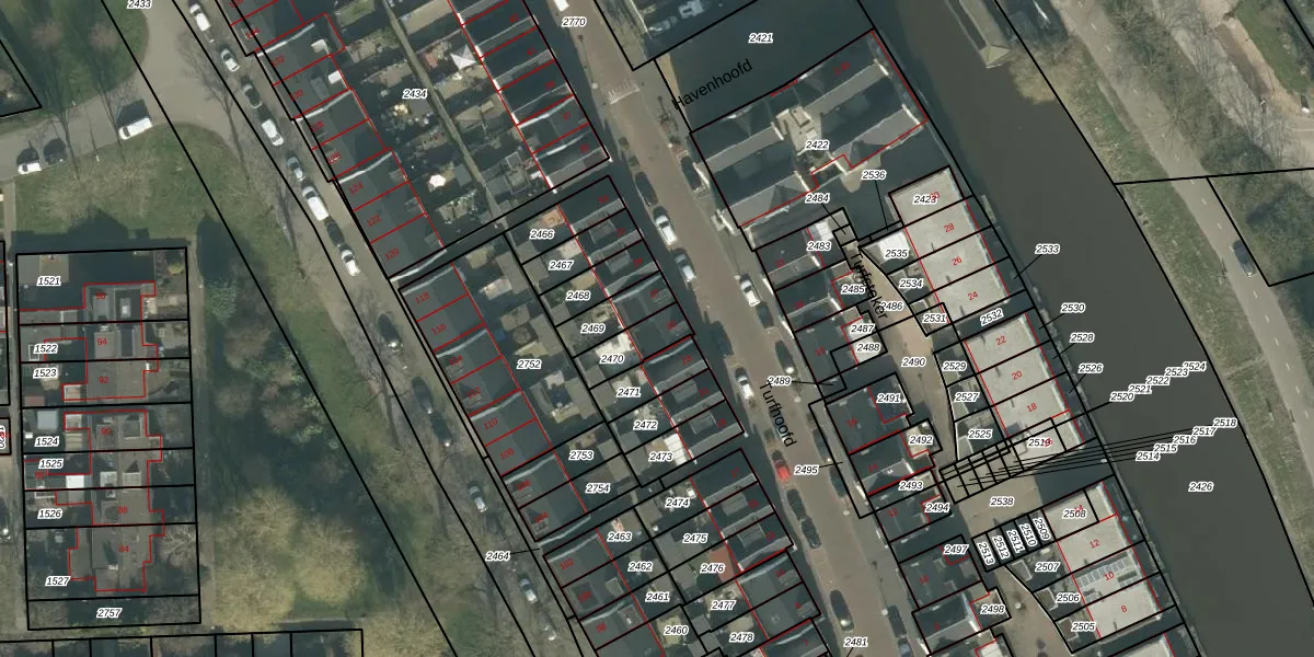 Gebruik de zoekbalk of klik op een perceel voor informatie over de adressen binnen dit perceel.