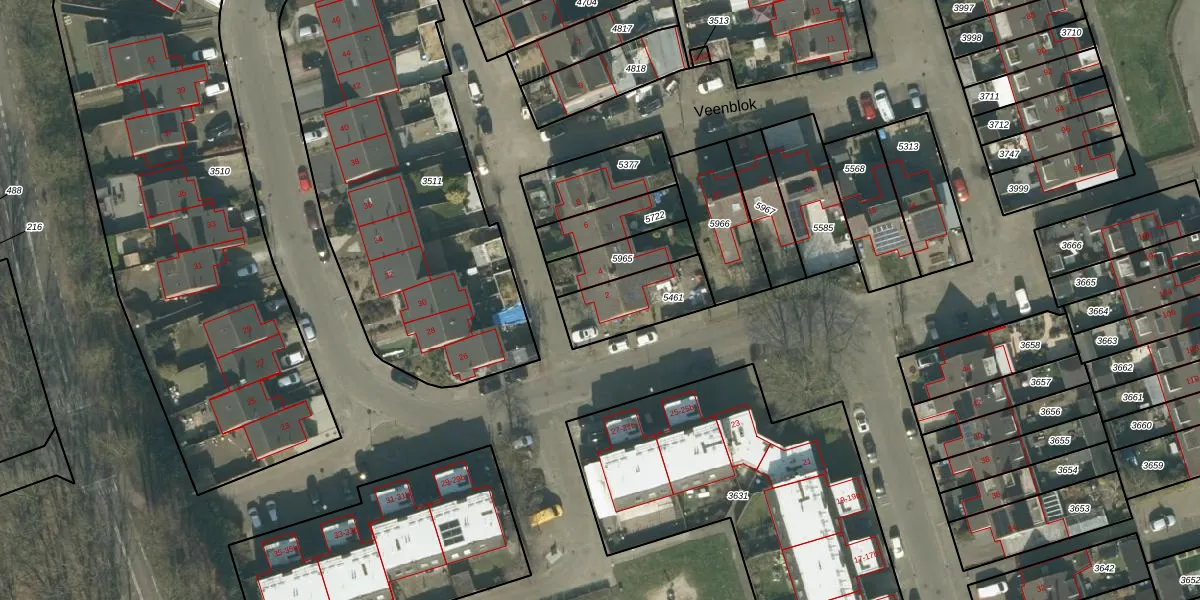 Het perceel waarop Veenblok 2 staat heeft een oppervlakte van 223 m². Dit is een middelgroot perceel. De perceeloppervlakte wordt geregistreerd door het Kadaster. Gedetailleerde informatie over de maten van dit perceel kunt u vinden in het rapport Kadastrale kaart met maatvoering van Veenblok 2.