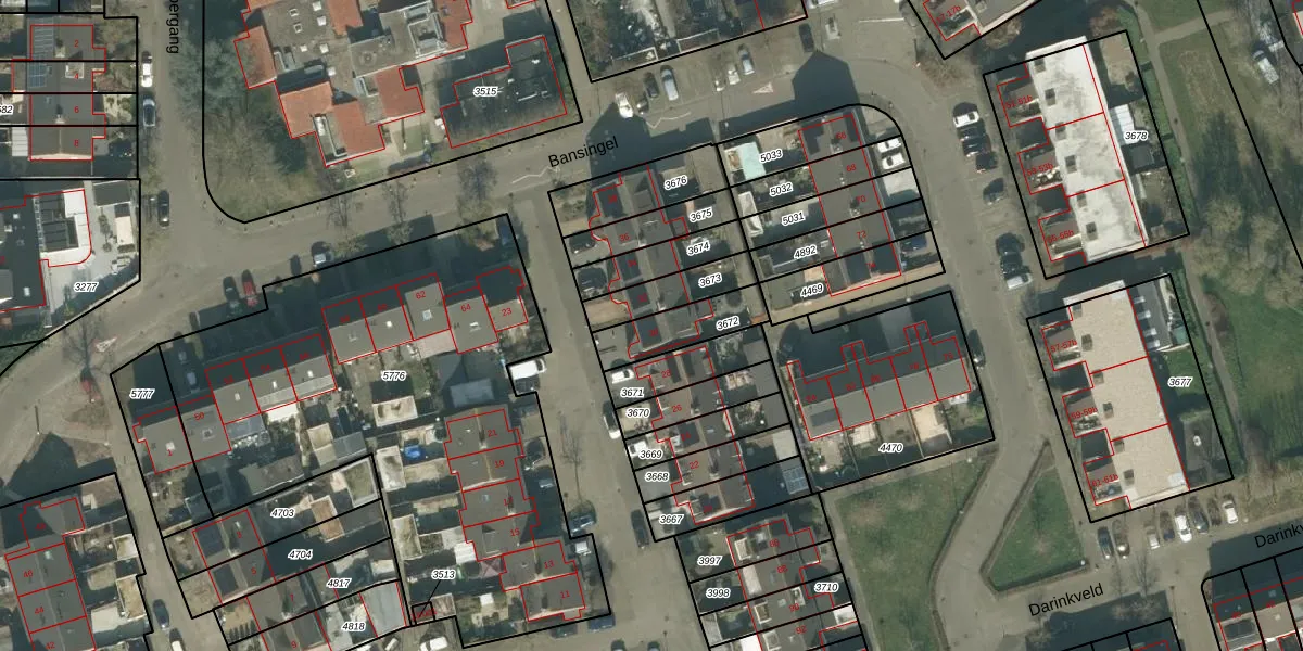 Gebruik de zoekbalk of klik op een perceel voor informatie over de adressen binnen dit perceel.