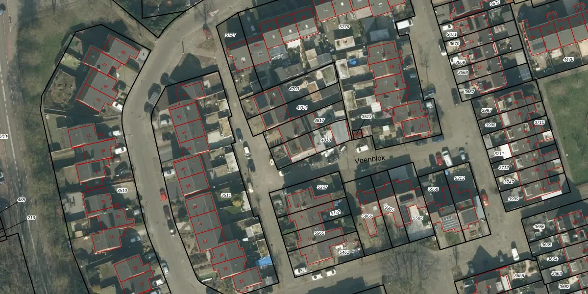 Gebruik de zoekbalk of klik op een perceel voor informatie over de adressen binnen dit perceel.