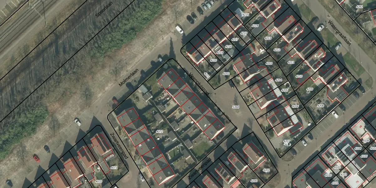 Veenpluispad 6 is gelegen op kadastraal perceel ODB02B4072. Deze kadastrale aanduiding is uniek en wordt gebruikt door het Kadaster om eigendomsrechten en andere zakelijke rechten vast te leggen. Het perceel maakt onderdeel uit van de kadastrale gemeente Oudenbosch.