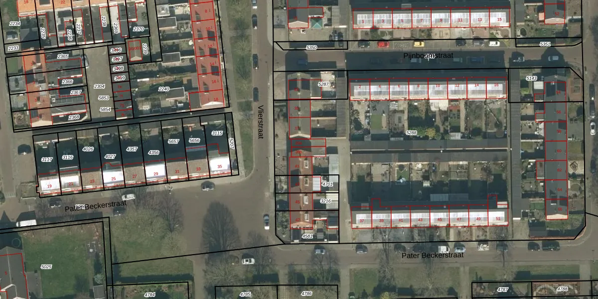 Het perceel waarop Vlierstraat 39-b staat heeft een oppervlakte van 4953 m². Dit is een zeer groot perceel. De perceeloppervlakte wordt geregistreerd door het Kadaster. Gedetailleerde informatie over de maten van dit perceel kunt u vinden in het rapport Kadastrale kaart met maatvoering van Vlierstraat 39-b.