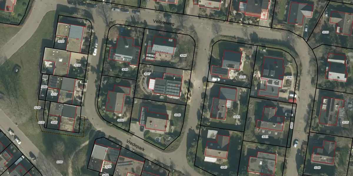 Het perceel waarop Vredepark 10 staat heeft een oppervlakte van 600 m². Dit is een groot perceel. De perceeloppervlakte wordt geregistreerd door het Kadaster. Gedetailleerde informatie over de maten van dit perceel kunt u vinden in het rapport Kadastrale kaart met maatvoering van Vredepark 10.