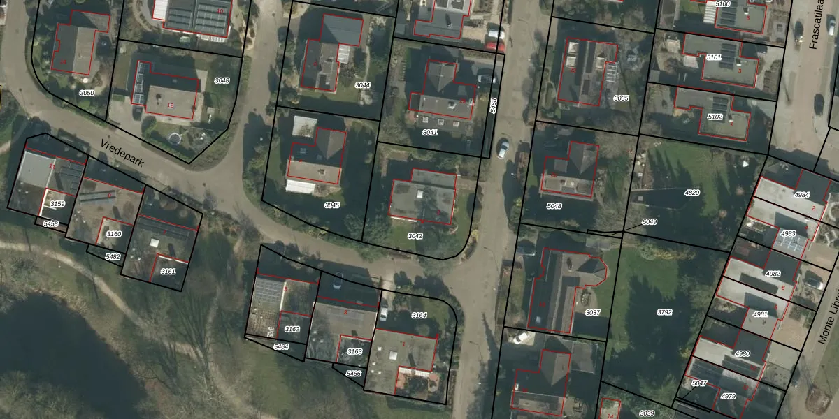 Het perceel waarop Vredepark 2 staat heeft een oppervlakte van 615 m². Dit is een groot perceel. De perceeloppervlakte wordt geregistreerd door het Kadaster. Gedetailleerde informatie over de maten van dit perceel kunt u vinden in het rapport Kadastrale kaart met maatvoering van Vredepark 2.