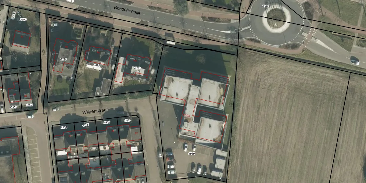 Wilgenstraat 105 is gelegen op kadastraal perceel ODB02B4959. Deze kadastrale aanduiding is uniek en wordt gebruikt door het Kadaster om eigendomsrechten en andere zakelijke rechten vast te leggen. Het perceel maakt onderdeel uit van de kadastrale gemeente Oudenbosch.