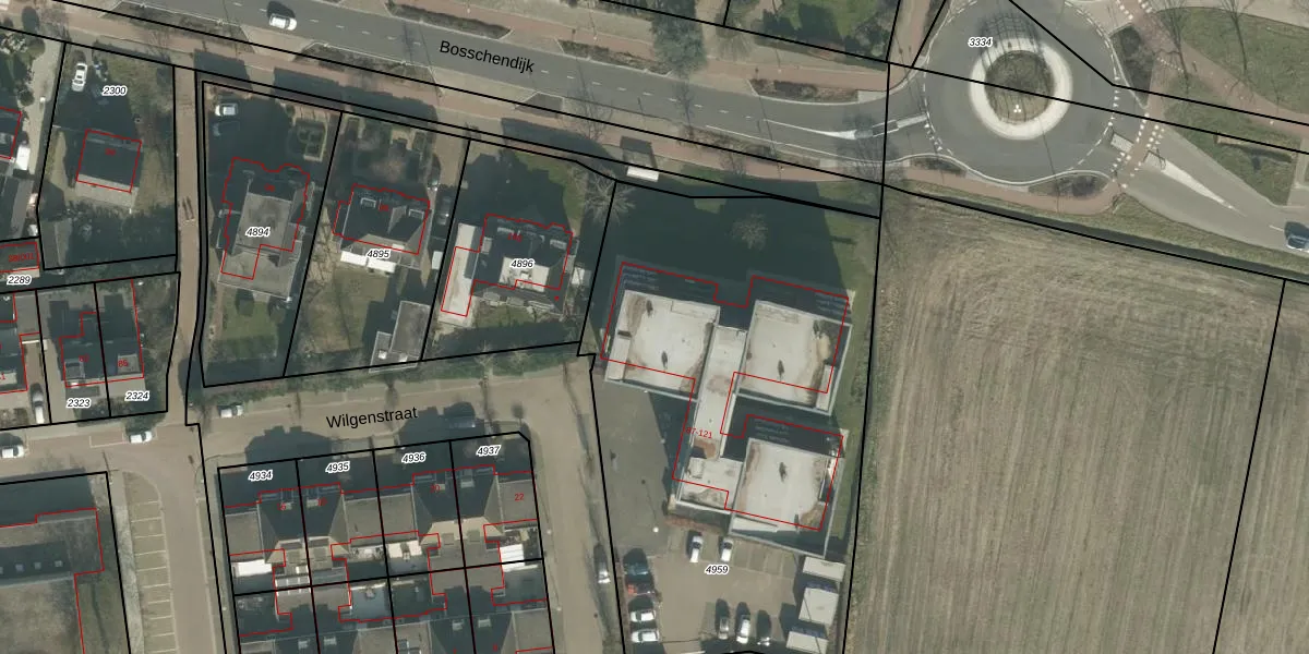 Wilgenstraat 113 is gelegen op kadastraal perceel ODB02B4959. Deze kadastrale aanduiding is uniek en wordt gebruikt door het Kadaster om eigendomsrechten en andere zakelijke rechten vast te leggen. Het perceel maakt onderdeel uit van de kadastrale gemeente Oudenbosch.