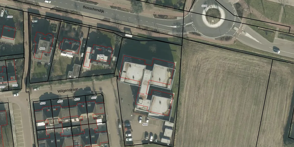 Wilgenstraat 117 is gelegen op kadastraal perceel ODB02B4959. Deze kadastrale aanduiding is uniek en wordt gebruikt door het Kadaster om eigendomsrechten en andere zakelijke rechten vast te leggen. Het perceel maakt onderdeel uit van de kadastrale gemeente Oudenbosch.