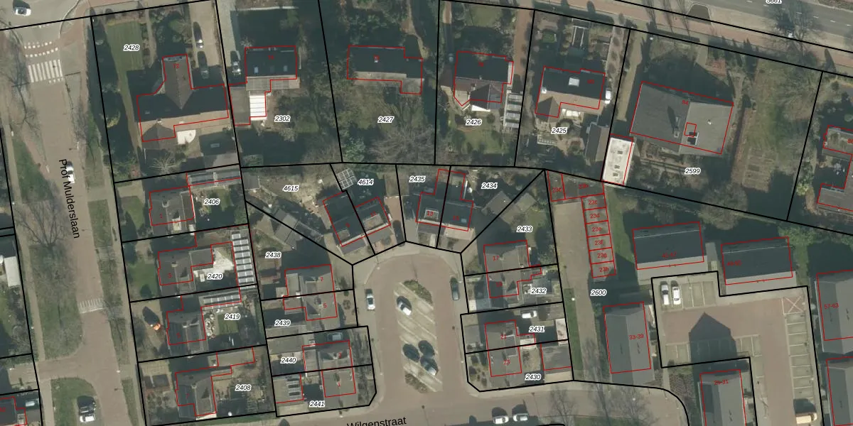 Wilgenstraat 13 is gelegen op kadastraal perceel ODB02B2435. Deze kadastrale aanduiding is uniek en wordt gebruikt door het Kadaster om eigendomsrechten en andere zakelijke rechten vast te leggen. Het perceel maakt onderdeel uit van de kadastrale gemeente Oudenbosch.